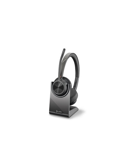 Auriculares Poly Voyager 4300 UC 4320 Cableado/Inalámbrico De Diadema Estéreo - Biauricular - Cobertor total de Oreja - 5000 cm - Bluetooth - 20 Hz a 20 kHz - 150 cm Cable - Soporte de carga INCLUIDO - Cancelación de ruido Micrófono - USB Tipo C, USB Tipo A