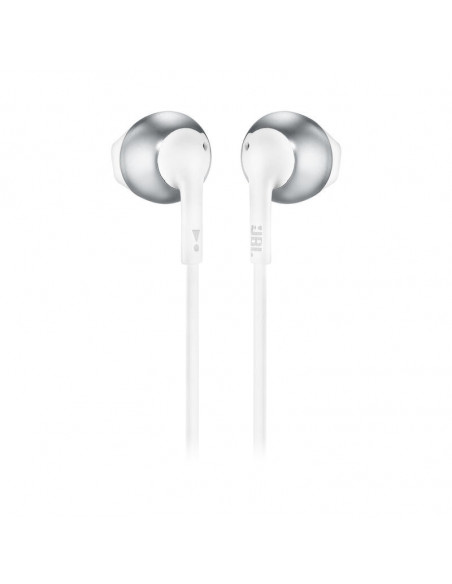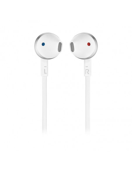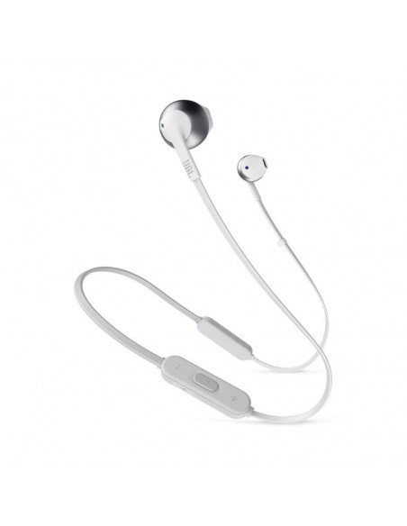 JBL Tune 205BT. Tipo de produto: Conjunto de auscultadores e microfone acoplado, Cor: Prateado. Tecnologia da conectividade: Sem fios/Wireless, Perfis Bluetooth: A2DP,AVRCP,HFP,HSP, Banda de frequência: 2.402 - 2.48 GHz. Acoplamento do ouvido: Intra-aural, Frequência dos auscultadores: 20 - 20000 Hz, Impedância: 32 O. Sensibilidade do microfone: -21 dB.