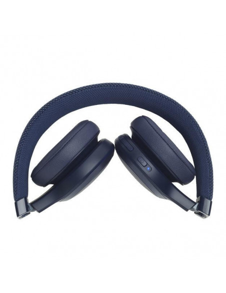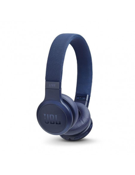 JBL Live 400BT. Tipo de produto: Conjunto de auscultadores e microfone acoplado, Estilo de vestir: Fita de cabeça, Cor da caixa: Azul. Tecnologia da conectividade: Sem fios/Wireless, Perfis Bluetooth: A2DP,AVRCP,HFP,HSP. Frequência dos auscultadores: 20 - 20000 Hz, Impedância: 32 ?, Diâmetro do altifalante: 4 cm. Tipo de controlo: Toque. Tempo de reprodução de música: 24 h, Tempo de conversação: 24 h, Tecnologia da bateria: Ião-lítio