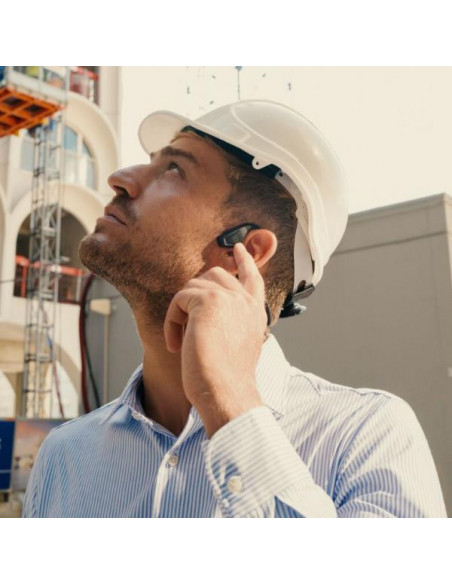 Auriculares sem fios Crosscall X-Vibes com transmissão óssea, cancelamento de ruído e controlo remoto.  Bateria de longa duração (14h de conversação). Conectividade Bluetooth e USB-C.