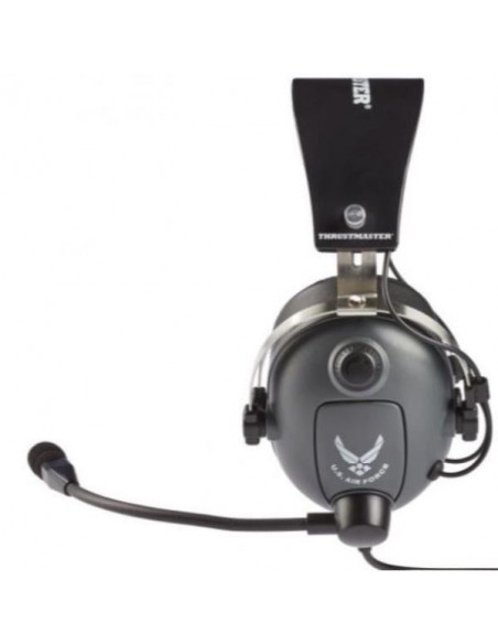 Auscultadores com fio Thrustmaster T.Flight US Air Force Edition DTS para PS4, Xbox One e PC.  Design biauricular, cinzento, com microfone integrado, controlo de volume e cancelamento de ruído. Ligação USB.