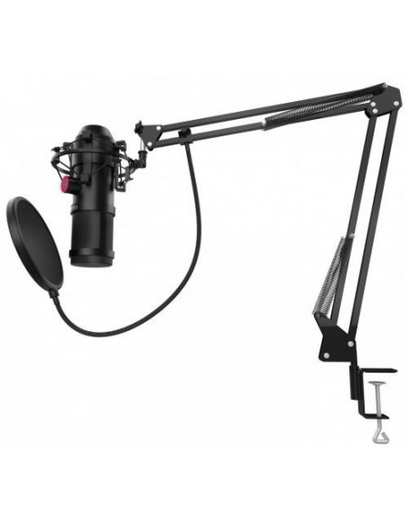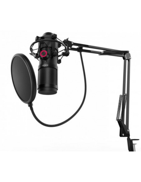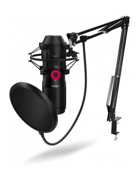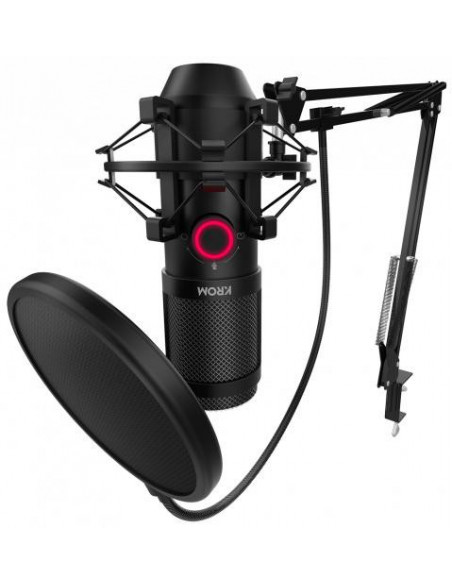O Krom Kapsule é um microfone de alta qualidade, perfeito para quem precisa de um som profissional para streaming, podcasts, gravações musicais ou simplesmente para conversas online.  Este microfone de condensador duplo oferece uma qualidade de áudio HD, com uma excelente sensibilidade na captação de sons e uma resposta de frequência de 20Hz a 20kHz. A inclusão de uma montagem anti-choque e de um filtro anti-pop garante a minimização de ruídos de fundo e de sons explosivos, resultando num áudio limpo e nítido. O seu design permite escolher entre dois padrões de captação: cardioide (para focar na voz e minimizar ruídos ambiente) e omnidirecional (para captação de som em 360 graus).  A escolha do padrão é feita facilmente através de um botão no próprio microfone. Para maior comodidade, o Krom Kapsule inclui uma saída de auscultadores de 3,5mm, permitindo monitorizar o áudio em tempo real. A sua ligação ao computador é simples e rápida, através de uma porta USB.  O design é moderno e elegante, em preto, com uma construção robusta em metal, que garante a sua estabilidade e durabilidade.  O cabo USB tem 2 metros de comprimento, oferecendo flexibilidade na colocação do microfone.  O microfone pesa 200g e tem as dimensões de 45x45x150mm. O consumo de energia é de 150mA a 5V DC.
