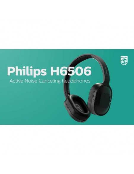Auscultadores Philips TAH6506BK/00, com tecnologia Bluetooth 5.0 para uma ligação estável e sem fios. Oferece cancelamento de ruído ativo, som de alta fidelidade e até 30 horas de autonomia.