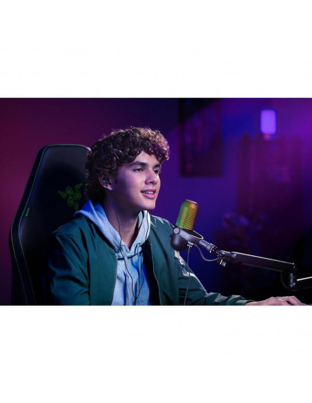 O Razer Seiren V3 Chroma é um microfone USB de alta qualidade, ideal para streaming e gravação profissional.  Oferece som cristalino e iluminação RGB Chroma personalizável.