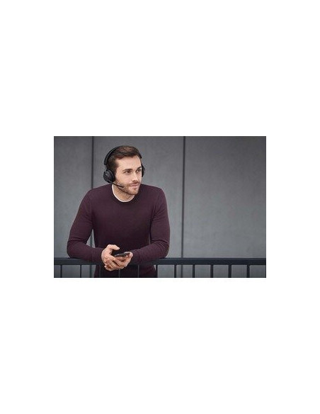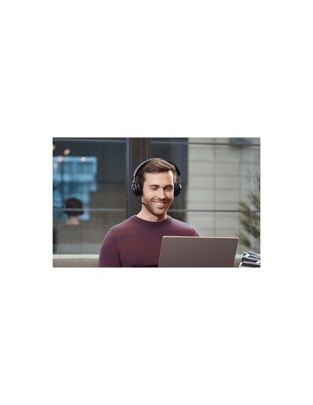 Tanto si está en la oficina como si está desplazándose, el ruido de fondo puede interrumpir su trabajo. Póngase su Evolve2 65 y sienta que el ruido se desvanece instantáneamente a su alrededor. Sus almohadillas ovaladas de espuma aislante y su nuevo y pionero diseño de auriculares en ángulo se unen para bloquear el ruido de su entorno eficazmente, ofreciéndole una cancelación de ruido pasiva sobresaliente como nunca antes.