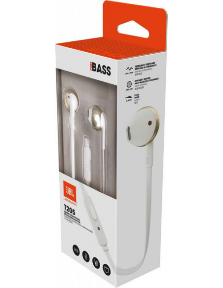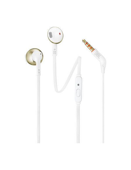 JBL T205. Tecnologia da conectividade: Com fios. Tipo de conjunto auscultadores e microfone: Binaural. Cor: Champanhe, Dourado