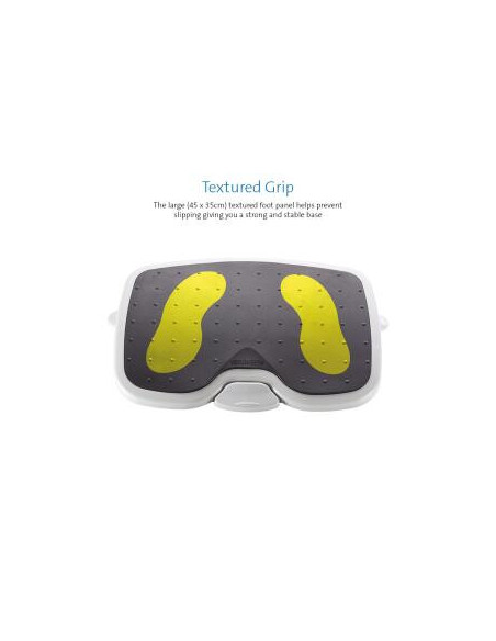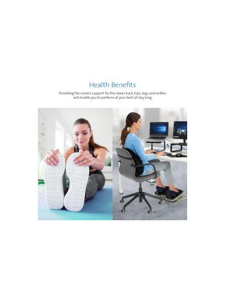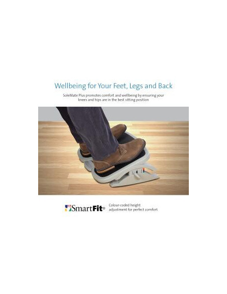 O Reposapés Kensington Solemate Plus melhora a postura e a circulação, aliviando as pernas e os pés durante o trabalho. Ajustável em altura e ângulo, garante o máximo conforto. O sistema SmartFit? ajuda a configurar a posição ergonómica ideal.
