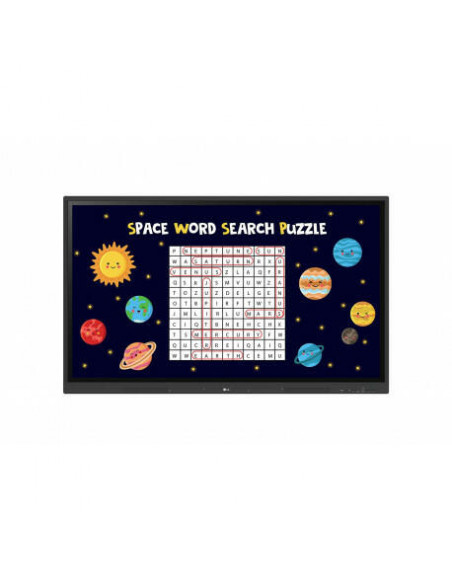 LG 65TR3DK-B. Tamanho do ecrã na diagonal: 165,1 cm (65"), Luminosidade: 390 cd/m², Resolução: 3840 x 2160 pixels. Sistema operativo instalado: Android 11, Arquitetura do processador: ARM Cortex-A55, Memória interna máxima: 32 GB. Potência do altifalante: 15 W. Padrão Wi-Fi máximo: Wi-Fi 6 (802.11ax), Padrões Wi-Fi: 802.11a, 802.11b, 802.11g, Wi-Fi 4 (802.11n), Wi-Fi 5 (802.11ac), Wi-Fi 6 (802.11ax), Taxa de transferência de dados Ethernet LAN: 10,100,1000 Mbit/s. Tipo de conetor USB: USB Type-A, USB Type-B, USB Type-C
