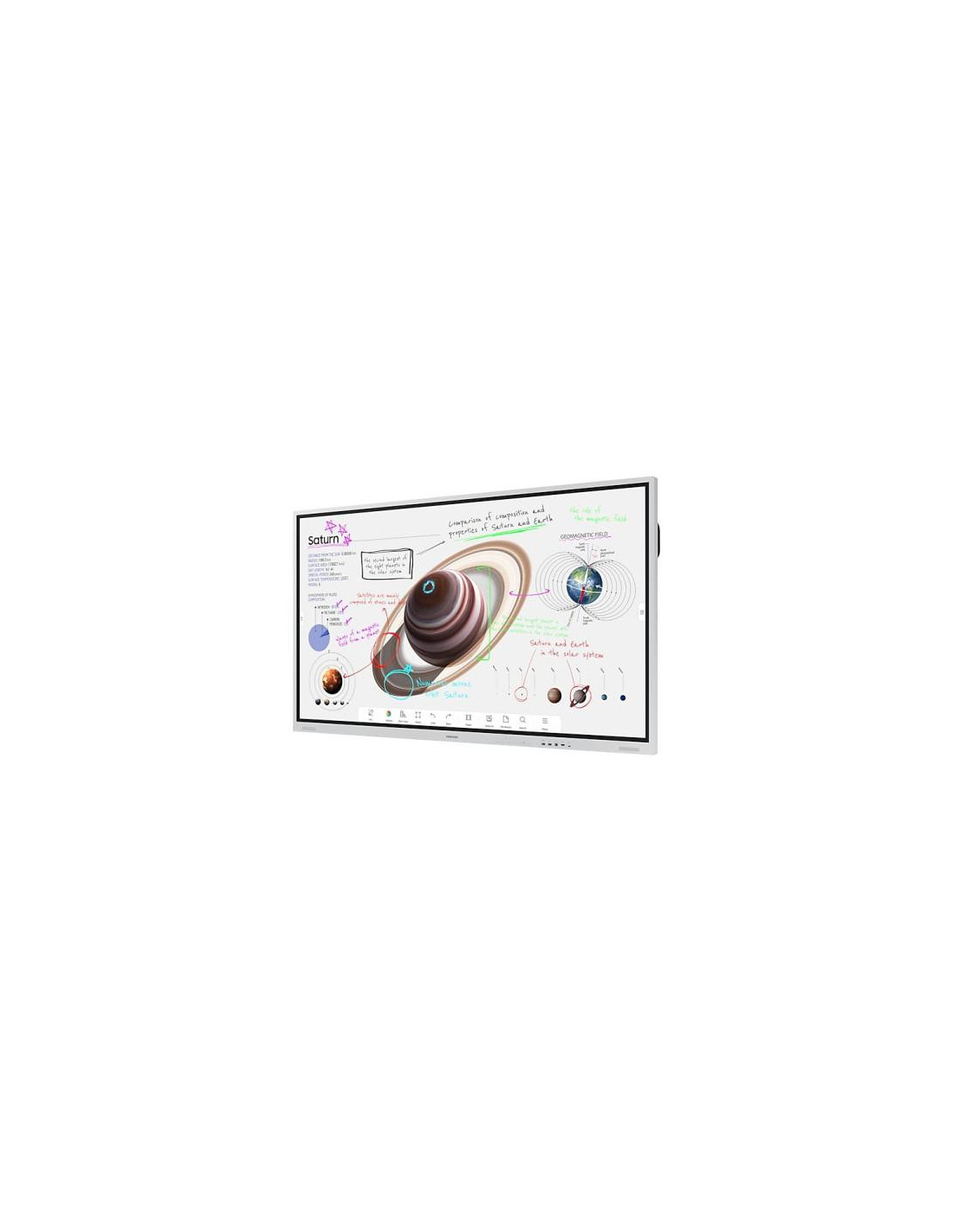A sua interface intuitiva permite uma fácil partilha de conteúdo e colaboração em tempo real. O processador interno ARM Cortex-A72 de 1,7 GHz, com 2 MB de cache, assegura um desempenho fluido e responsivo, mesmo com múltiplas aplicações abertas simultaneamente. Os 3,5 GB de RAM e os 29,3 GB de memória interna utilizável garantem a fluidez do sistema e a capacidade de armazenar uma grande quantidade de informação. A ligação HDMI permite ligar uma vasta gama de dispositivos. Inclui ainda uma entrada de auscultadores (3,5 mm) e altifalantes integrados de 10W, para uma experiência multimédia completa. O sistema operativo é otimizado para a interação, permitindo escrever e desenhar diretamente no ecrã com um toque. Informações adicionais podem ser encontradas na página do fabricante: https://displaysolutions.samsung.com/digital-signage/detail/2012/Samsung-Flip-Pro-(WM85B)
