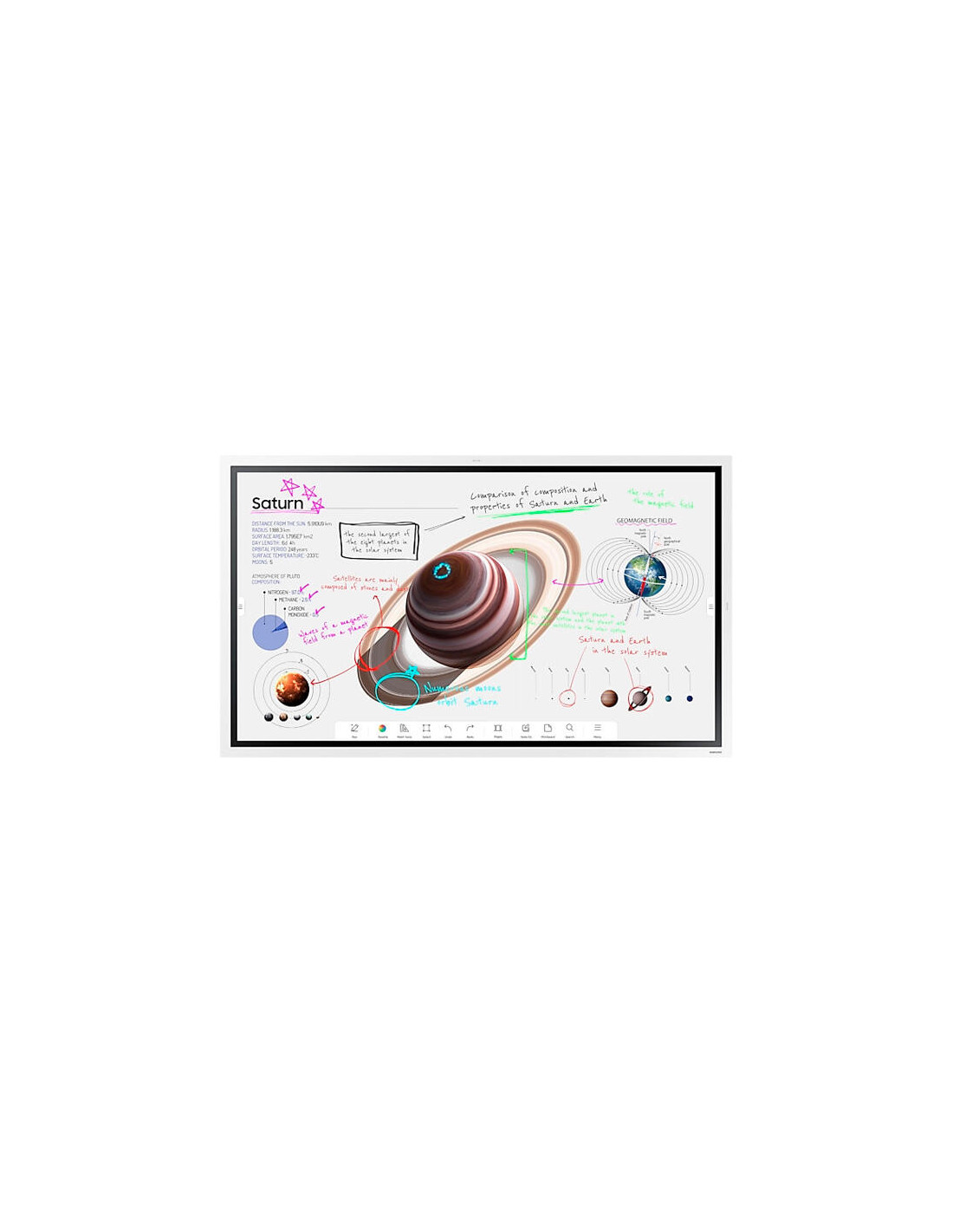O Samsung Flip Pro WM55B é um ecrã interativo de 55 polegadas, ideal para ambientes profissionais. Com tecnologia de painel VA, oferece uma excelente qualidade de imagem com resolução 4K Ultra HD (3840 x 2160 pixels) e luminosidade de 350 cd/m². O ecrã tátil permite uma interação intuitiva e eficiente. A conectividade Wi-Fi garante uma fácil integração em qualquer rede.  Concebido para utilização intensiva, funciona 16 horas por dia, 7 dias por semana.  Utiliza o sistema operativo Tizen 6.5 e apresenta um design elegante na cor branca. Mais detalhes podem ser encontrados em: https://www.samsung.com/uk/business/smart-signage/digital-flipchart/flip-display-wmr-series-lh55wmrwbgcxen/
