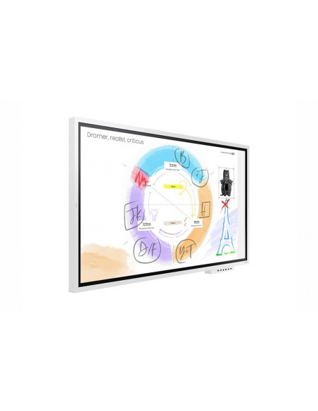 O monitor Samsung WM65R é um ecrã interativo de alta resolução projetado para ambientes profissionais, como salas de reuniões e espaços de colaboração. Com um tamanho de 65 polegadas (165,1 cm) e uma resolução 4K Ultra HD (3840 x 2160 pixels), oferece imagens nítidas e detalhadas, ideais para apresentações impactantes e visualização de conteúdo multimédia.