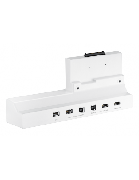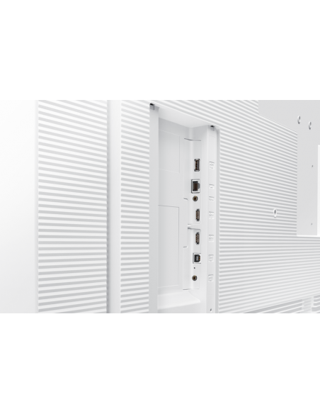 Outras características incluem: tempo de resposta de 8 ms, rácio de contraste de 4000:1, ângulos de visão amplos (178° horizontal e vertical), e altifalantes incorporados para áudio integrado. O design elegante e minimalista em branco encaixa-se em qualquer ambiente profissional. O monitor suporta montagem VESA (400x400 mm), permitindo uma instalação flexível e personalizada.