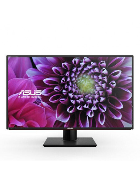 ASUS PA328Q. Diagonal de la pantalla: 81,3 cm (32"), Brillo de pantalla: 350 cd / m², Resolución de la pantalla: 3840 x 2160 Pixeles. Potencia estimada RMS: 6 W. Color del producto: Negro. Ranura para cable de seguridad: Kensington, Interfaces de montaje VESA: 100 x 100 mm, Ángulo de inclinación: 20 - -5°. Voltaje de entrada AC: 100 - 240 V, Frecuencia de entrada AC: 50/60 Hz, Consumo de energía (inactivo): 0,5 W