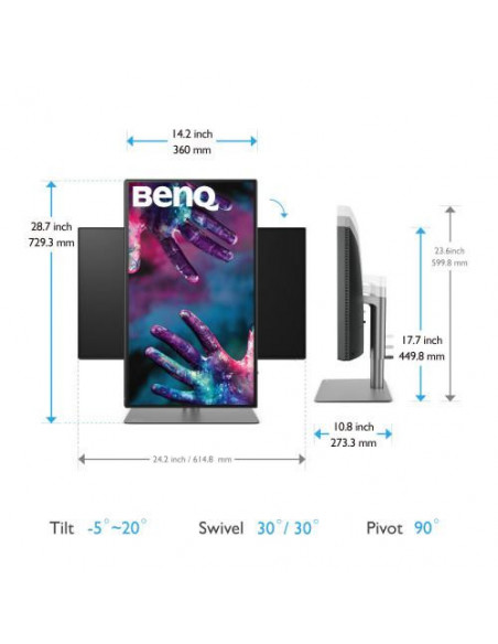 BenQ DesignVue PD2725U - Monitor LED - 27" - 3840 x 2160 4K @ 60 Hz - IPS - 250 cd/m² - 1200:1 - HDR10 - 5 ms - 2xThunderbolt 3, 2xHDMI, DisplayPort - altifalantes - cinza, preto