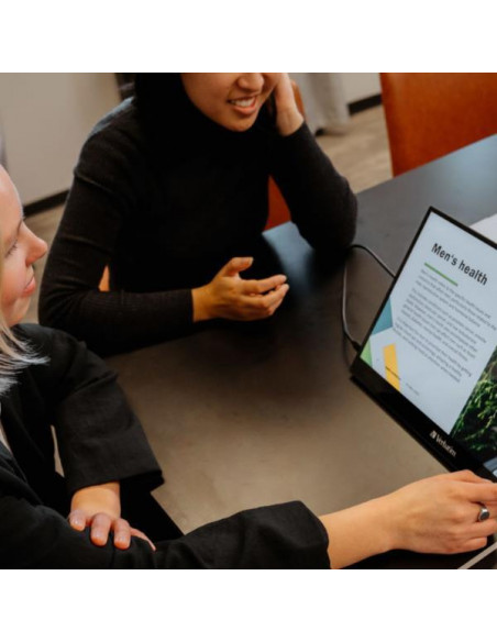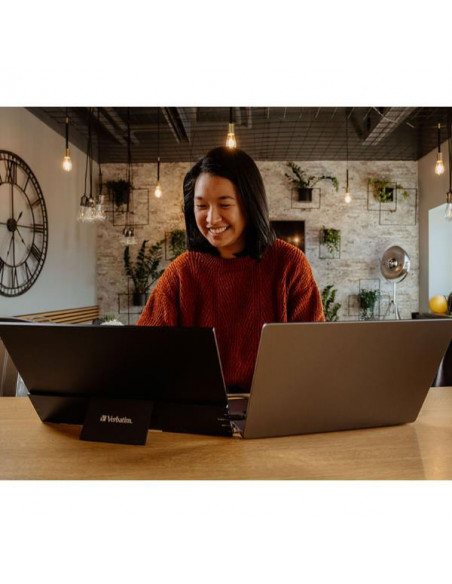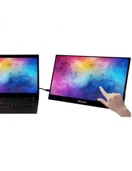 O monitor Verbatim 49593 é uma solução portátil e versátil para quem necessita de um ecrã adicional em movimento ou em ambientes de trabalho adaptáveis. O seu ecrã tátil de 17,3 polegadas oferece uma experiência de utilização intuitiva e prática, permitindo uma interação direta com o conteúdo apresentado. A tecnologia de painel IPS assegura cores vivas e precisas, com ângulos de visão amplos que garantem uma visualização clara e nítida de imagens e vídeos, independentemente da posição do utilizador.