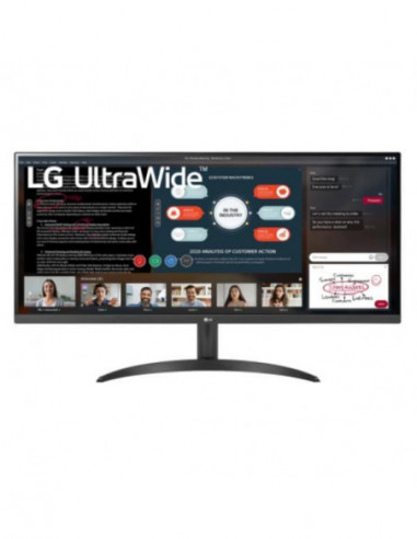 O monitor LG 34WP500-B proporciona uma experiência visual excepcional graças à sua tela UltraWide de 34 polegadas com tecnologia IPS. A tecnologia IPS garante cores precisas, ângulos de visão amplos e imagens nítidas, independentemente do ângulo de visualização. Com uma resolução de 2560 x 1080 pixels e uma taxa de atualização de 75Hz, imagens fluidas e livres de borrões são garantidas, ideais para jogos e aplicações multimédia. O tempo de resposta de 5ms minimiza o efeito ghosting, contribuindo ainda mais para a fluidez da imagem. O design elegante e minimalista do monitor integra-se perfeitamente em qualquer espaço de trabalho ou ambiente doméstico. A sua funcionalidade é complementada por duas portas HDMI, permitindo ligar vários dispositivos. Embora não possua ajuste de altura nem função de pivô, as suas características de imagem excecionais compensam a ausência destas funcionalidades. A sua relação de aspecto 21:9 oferece um amplo espaço de trabalho ideal para multitarefas. Para obter informações detalhadas sobre as especificações técnicas, por favor, consulte a ficha técnica disponível em [Link para a ficha técnica].