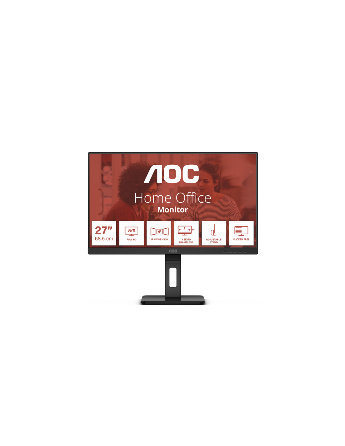 O monitor AOC 27E3QAF de 27 polegadas oferece uma experiência visual Full HD com painel IPS. Destaca-se pela taxa de atualização de 75Hz, tempo de resposta de 4ms e tecnologia FreeSync, proporcionando imagens nítidas e suaves. Inclui altifalantes e design sem moldura.