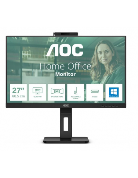 O AOC Q27P3QW é um monitor de ecrã plano de 27" com um design de moldura ultrafina em três lados e detalhe da resolução QHD (2560 x 1440)