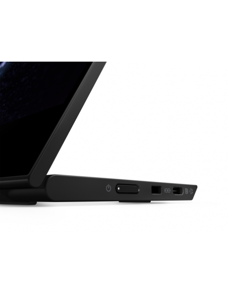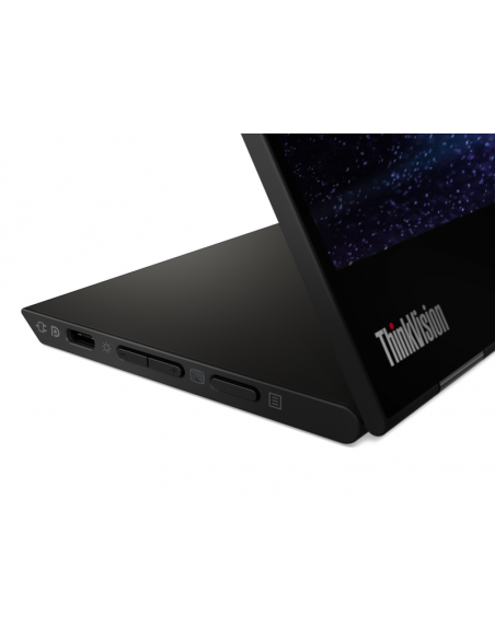 O Lenovo M14t é um monitor LED portátil de 14 polegadas com resolução Full HD (1920 x 1080 pixels), ideal para utilizadores que necessitam de uma solução de visualização adicional em movimento. Este monitor oferece uma experiência visual imersiva com a sua tecnologia de painel IPS, que garante cores precisas e ângulos de visualização amplos (178° horizontal e vertical). O seu design elegante em preto Raven Black e o formato fino tornam-no perfeito para transportar e usar em qualquer lugar.