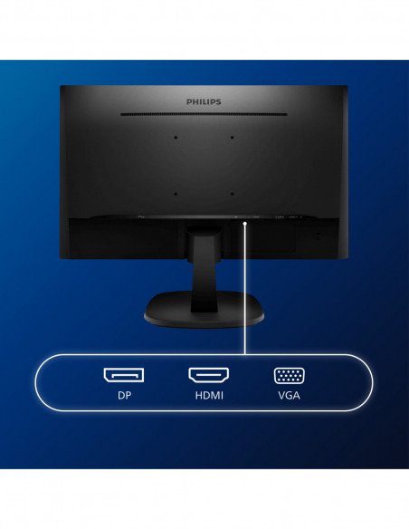 Philips V Line Monitor LCD Full HD 273V7QJAB/00. Tamanho do ecrã na diagonal: 68,6 cm (27"), Resolução: 1920 x 1080 pixels, Tipo de HD: Full HD, Tecnologia de apresentação: LED. Visor: LED. Tempo de resposta: 4 ms, Proporção de imagem nativa: 16:9, Ângulo de visão (horizontal): 178°, Ângulo de visão (vertical): 178°. Altifalantes incorporados. Suporte VESA. Cor do produto: Preto