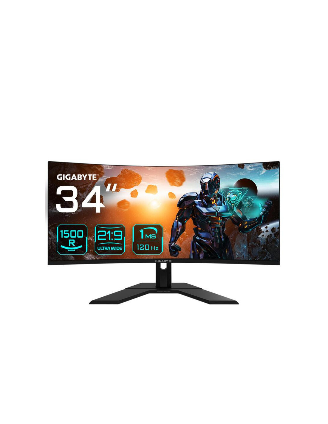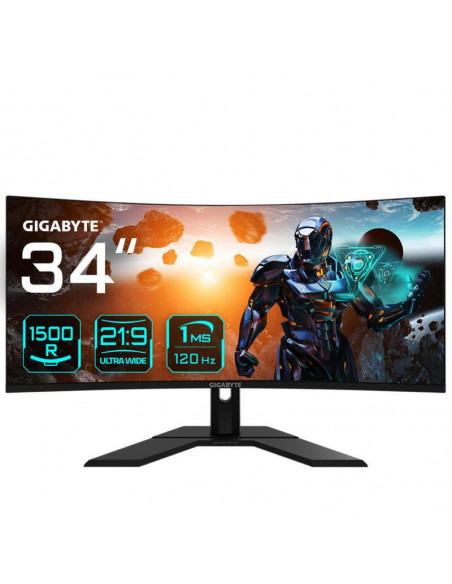 O monitor Gigabyte GS34WQC de 34 polegadas oferece uma experiência visual imersiva com resolução WQHD (3440x1440), painel VA curvo e taxa de atualização de 120Hz. Ideal para jogos e produtividade.