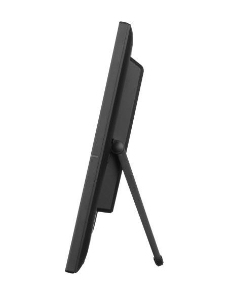 O ecrã táctil capacitivo projectado suporta até 10 pontos de toque simultâneos, permitindo uma interacção fluida e intuitiva. O brilho típico de 360 cd/m² garante boa visibilidade mesmo em ambientes com alguma luz ambiente. O monitor possui altifalantes integrados e duas portas USB 3.2 Gen 1 (3.1 Gen 1), facilitando a ligação de periféricos.