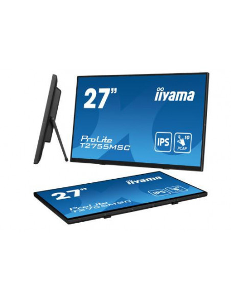 O monitor Iiyama ProLite T2755MSC-B1 é um monitor de 27 polegadas (68,6 cm) com ecrã táctil capacitivo projectado, resolução Full HD (1920 x 1080 pixels) e painel IPS. Oferece um ângulo de visão amplo (178° horizontal e vertical), brilho de 360 cd/m² e tempo de resposta de 5ms. Inclui duas portas USB 3.2 Gen 1, altifalantes e suporte VESA para montagem na parede. Ideal para ambientes profissionais que necessitam de um monitor interactivo.