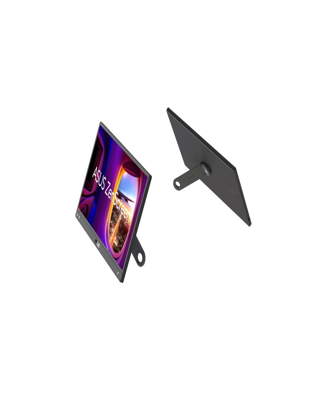 O monitor ASUS ZenScreen MB166CR é uma solução de monitor portátil de 15,6 polegadas, ideal para aumentar a sua produtividade em casa, no escritório ou em viagem. Com uma resolução Full HD de 1920 x 1080 pixels e tecnologia IPS, proporciona imagens nítidas e cores vibrantes com ângulos de visão amplos de 178° (horizontal e vertical). O tempo de resposta de 5 ms garante imagens suaves e sem borrões, mesmo em cenas de ação rápida. A sua interface USB-C DisplayPort Alternate Mode permite uma ligação rápida e fácil a vários dispositivos, simplificando a configuração. O design fino e leve (780g sem base) facilita o transporte. O monitor integra tecnologias como Flicker-free e Low Blue Light, concebidas para reduzir a fadiga ocular e melhorar o conforto durante longos períodos de utilização. A sua relação de contraste de 800:1 garante imagens ricas em detalhes e o brilho de 250 cd/m² garante boa visibilidade em diferentes condições de iluminação. O monitor possui uma tela antirreflexiva, o que melhora a experiência visual em ambientes com muita luz. O monitor é compatível com o modo de jogo para otimização em jogos. As suas dimensões são 360,1 mm de largura, 11,8 mm de profundidade e 225,6 mm de altura (sem base). O consumo de energia é baixo, a classificação energética é B (SDR), com um consumo de 5,24W em uso e 0,3W em modo desligado.