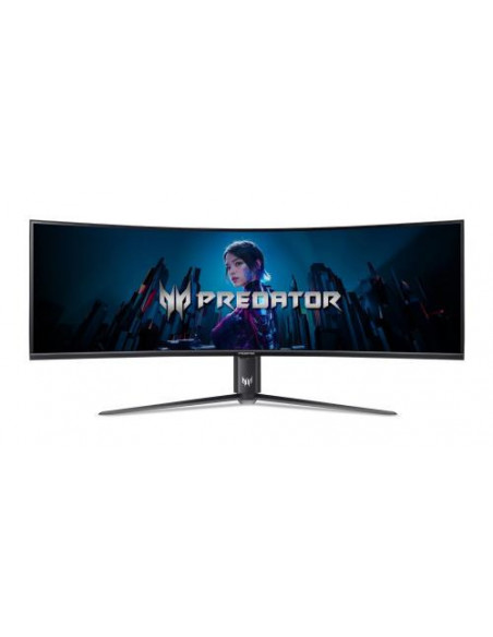 Monitor curvo Acer Predator Z57bmiiphuzx (UM.NZ7EE.001) de 57 polegadas com resolução 7680x2160 (DUHD) e taxa de atualização de 120Hz. Oferece uma experiência de visualização imersiva com tecnologia Mini LED, HDR DisplayHDR 600 e curvatura 1000R. Integração com USB 3.2 Gen 1 e montagem VESA para maior versatilidade.