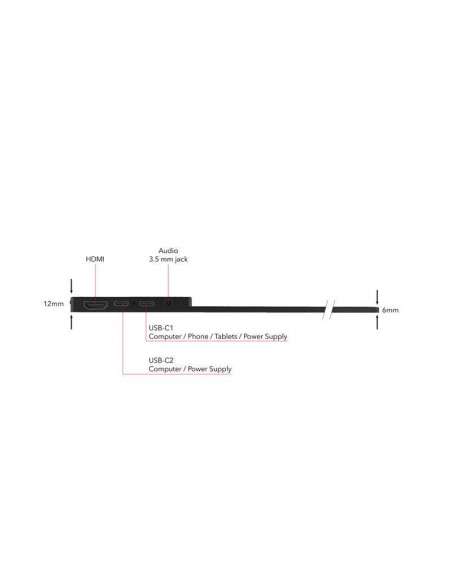 A sua portabilidade é um dos seus pontos fortes. Com dimensões compactas (32,9 cm de largura, 1,2 cm de profundidade e 20,9 cm de altura) e um peso de apenas 860 g, é fácil de transportar na sua mochila ou mala, tornando-o ideal para uso em viagens de negócios ou para apresentações. O monitor também inclui um cabo USB tipo C para USB tipo C.
