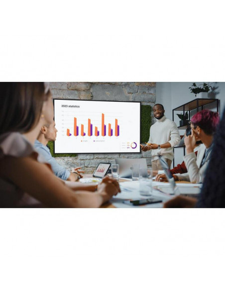 O monitor suporta instalação na parede com um suporte VESA de 400 x 200 mm, permitindo uma integração flexível em diferentes ambientes. A orientação horizontal/vertical permite uma adaptação às necessidades de cada situação. A sua estrutura robusta permite uma utilização contínua 24/7. O sistema operativo Android 11 proporciona uma experiência de utilizador intuitiva e acesso a uma vasta gama de aplicações.
