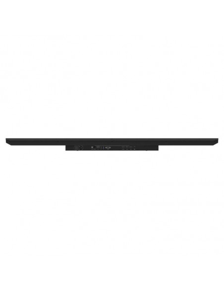 A conectividade é abrangente, com 3 portas HDMI 2.0, 3 portas USB (incluindo USB 2.0, USB 3.2 Gen 1 Tipo-A e Tipo-C), Ethernet LAN (RJ-45), Wi-Fi e uma porta RS-232. Este ecrã integra alta-falantes estéreo com 10W de potência RMS, proporcionando uma experiência sonora completa.