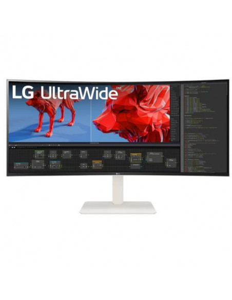 Monitor LG 38WR85QC-W: um monitor curvo de 38 polegadas (37,5 polegadas na diagonal) com resolução UltraWide QHD (3840 x 1600 pixels), tecnologia IPS, taxa de atualização de 144Hz e suporte HDR. Oferece ajuste de altura, plataforma giratória e conectividade abrangente.