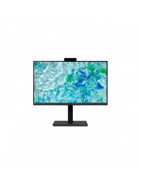 O monitor Acer Vero B277DEbmiprczxv é um monitor flexível e versátil, ideal para uso profissional. O ecrã de 27 polegadas (68,6 cm) com painel IPS e resolução Full HD (1920 x 1080 pixels) garante uma imagem nítida e estável, mesmo em ângulos amplos. A frequência de atualização de 100 Hz proporciona uma visualização suave e sem interrupções, ideal para trabalhos gráficos ou jogos. A conectividade abrangente inclui portas HDMI, DisplayPort e VGA, permitindo ligação a uma variedade de dispositivos. Este monitor integra ainda uma webcam e um concentrador USB com quatro portas, aumentando a praticidade no ambiente de trabalho. O design de moldura fina facilita a configuração de múltiplos monitores. O suporte oferece ajustes ergonómicos personalizáveis, incluindo inclinação, rotação, ajuste de altura e pivô de 90º, permitindo uma posição de visualização confortável e adaptada às necessidades do utilizador. As suas características técnicas incluem: Classe de eficiência energética E; consumo de energia de 21,5 watts (ligado); consumo em standby de 0,5 watts; tempo de resposta GtG de 4 ms; contraste estático de 1000:1; contraste dinâmico de 100.000.000:1; brilho de 250 cd/m²; alto-falantes incorporados; e compatibilidade com o sistema de segurança Kensington. Para mais detalhes técnicos consultar a ficha técnica do produto disponível no website do fabricante.
