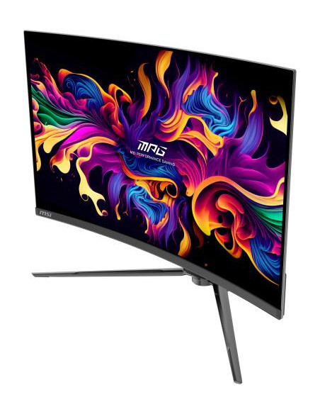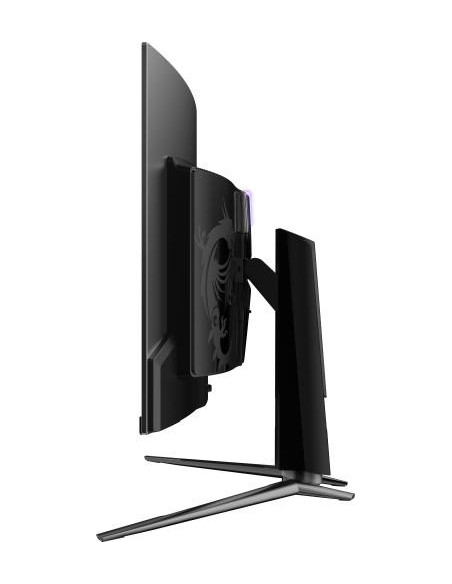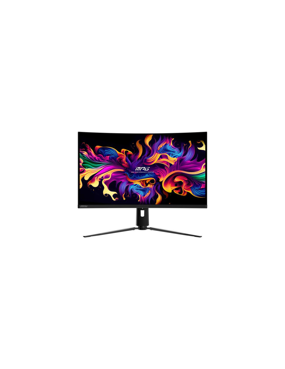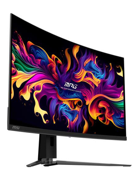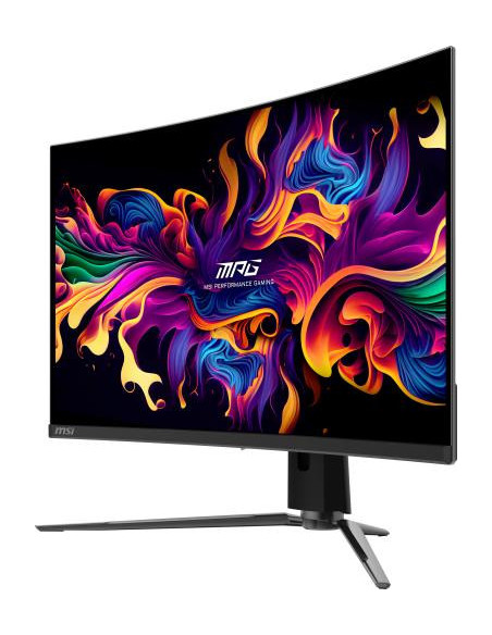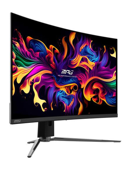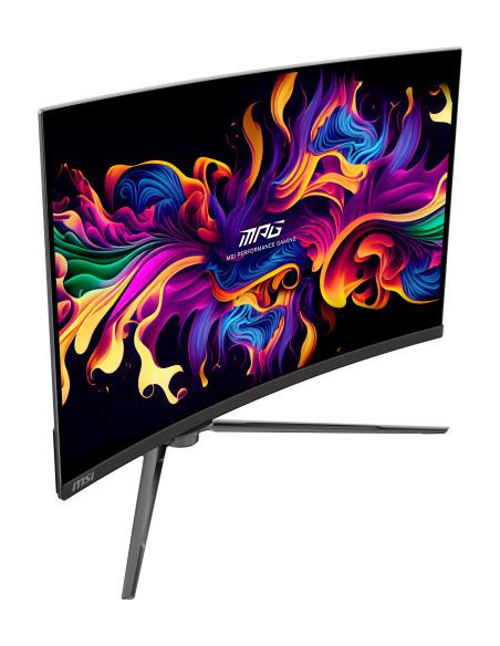 Monitor curvo MSI MPG 321CURX QD-OLED de 31,5 polegadas com resolução 4K Ultra HD (3840 x 2160 pixels) e taxa de atualização de 240Hz. Oferece uma experiência de visualização imersiva com cores vibrantes e tempos de resposta ultrarrápidos. Inclui portas HDMI 2.1, DisplayPort 1.4a e USB. Design elegante e ajuste de altura, inclinação e rotação.