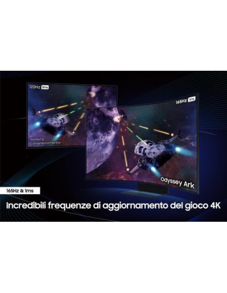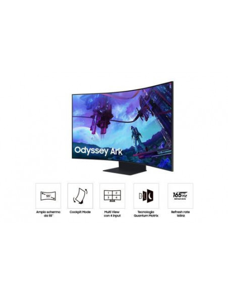 O monitor Samsung Odyssey S55CG970NU é um ecrã curvo de 55 polegadas com resolução 4K Ultra HD (3840 x 2160 pixels). Destaca pela sua elevada taxa de atualização de 165 Hz e tecnologia HDR10+ Gaming e Quantum HDR, oferecendo imagens vibrantes e fluidas. Integra funcionalidades inteligentes, como compatibilidade com SmartThings e Bixby, além de possuir várias portas de ligação. A sua construção robusta e design elegante tornam-no uma excelente opção para jogos e entretenimento.