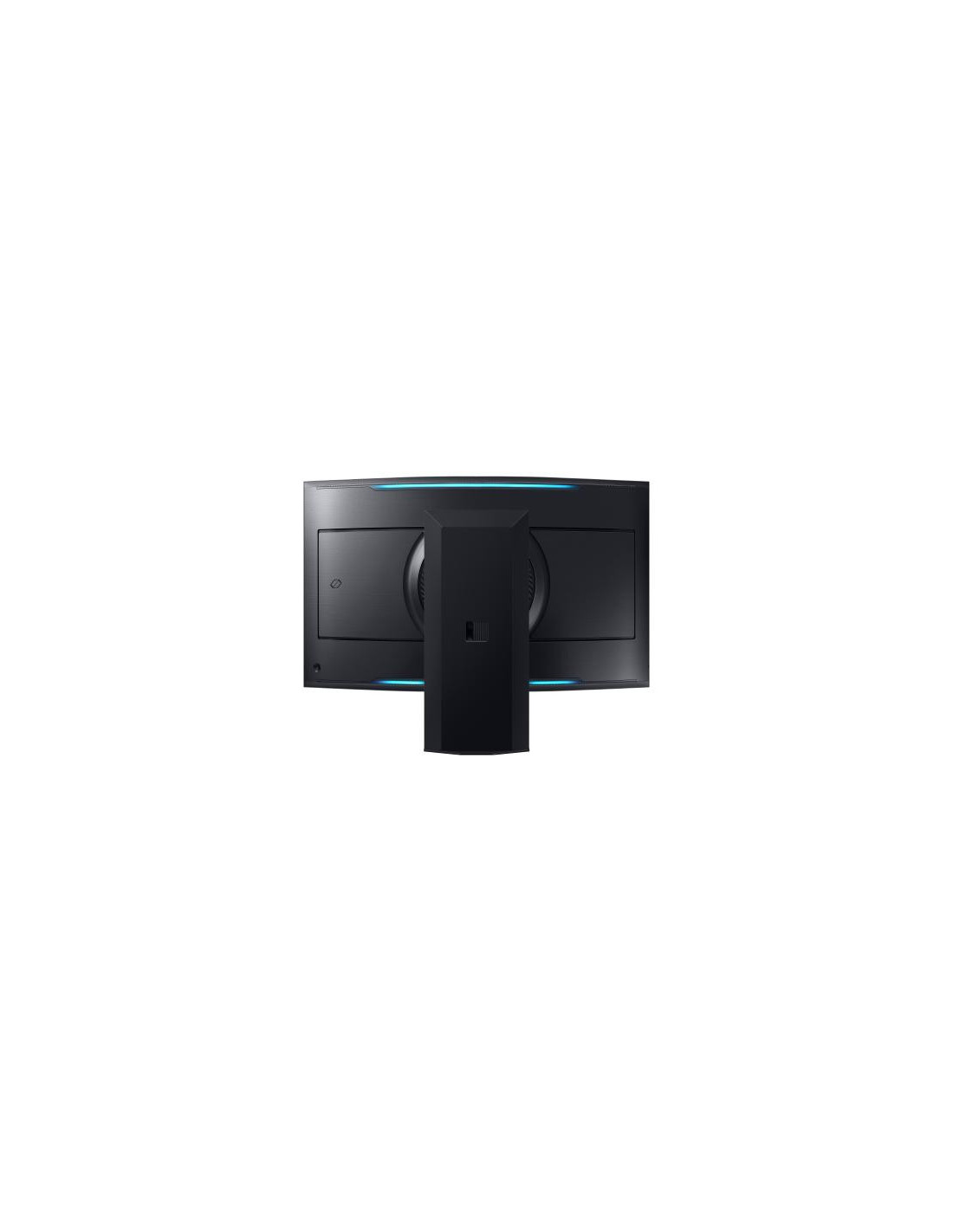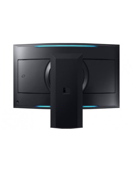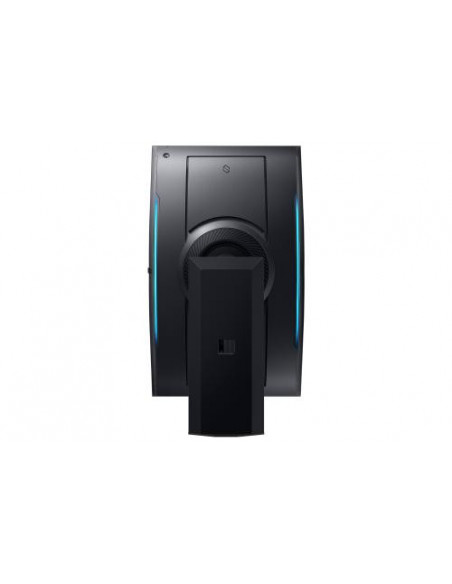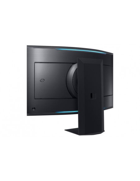 O design ergonómico inclui ajustes de altura (até 27 cm), inclinação (-10° a 10°) e rotação (-90° a 90°), assegurando uma posição de visualização otimizada. O suporte VESA (200 x 200 mm) permite a montagem em braço ou suporte de parede. O monitor também inclui um comando remoto para facilitar o acesso às suas funcionalidades. Em termos de consumo energético, a classe de eficiência energética é G tanto em SDR como HDR. O consumo máximo é de 140W. Finalmente, o monitor integra o sistema operativo Tizen e várias funcionalidades smart, como o assistente virtual Bixby, e compatibilidade com SmartThings e Office 365. As dimensões com o suporte são 1174,8 mm (largura) x 379 mm (profundidade) x 1102 mm (altura), e o peso é de 41,5 kg.