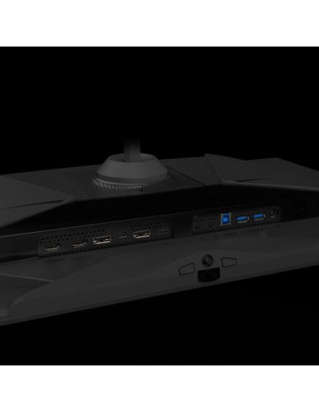 Este monitor é extremamente versátil em termos de conectividade. Dispõe de duas entradas HDMI 2.1, duas entradas DisplayPort 1.4, uma entrada mini DisplayPort e três portas USB 3.2 de alta velocidade. Adicionalmente, inclui uma porta USB Type-C com suporte para USB Power Delivery de até 18W. Estas opções de conectividade permitem conectar diversos periféricos e dispositivos, simplificando a sua utilização.