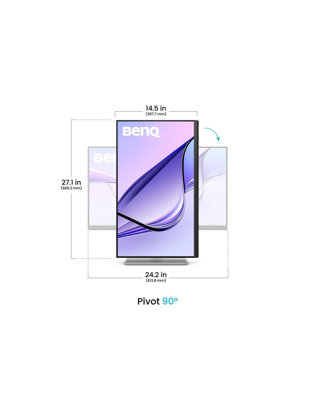 Para otimizar a experiência de utilização, o monitor BenQ MA270U é ajustável em altura, podendo ser inclinado e pivotado. Esta flexibilidade permite que ajuste o monitor perfeitamente às suas preferências e necessidades, maximizando o conforto e a produtividade. O design elegante e minimalista do MA270U complementa qualquer espaço de trabalho.
