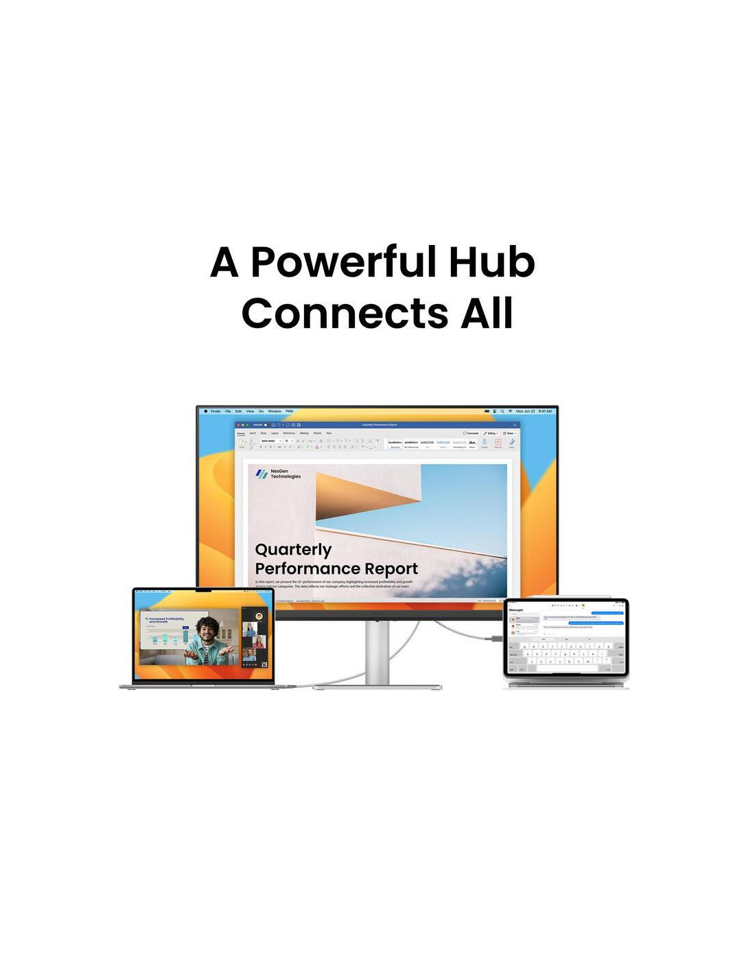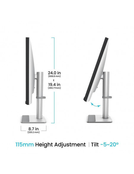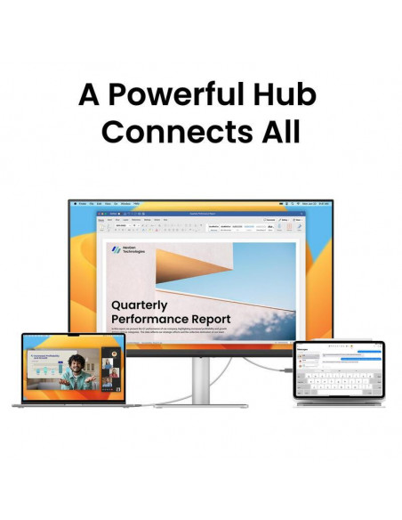 A conectividade USB-C permite a ligação de um computador portátil ou outro dispositivo com apenas um cabo, transmitindo dados, vídeo e energia simultaneamente. Esta funcionalidade simplifica a configuração e a gestão de cabos. O monitor inclui múltiplas opções de conectividade, incluindo portas HDMI, garantindo compatibilidade com uma vasta gama de dispositivos. O seu design elegante e o seu suporte ergonómico permitem ajustar a altura, inclinação e rotação do monitor, adaptando-o às suas preferências e necessidades, contribuindo para o conforto durante horas de uso.