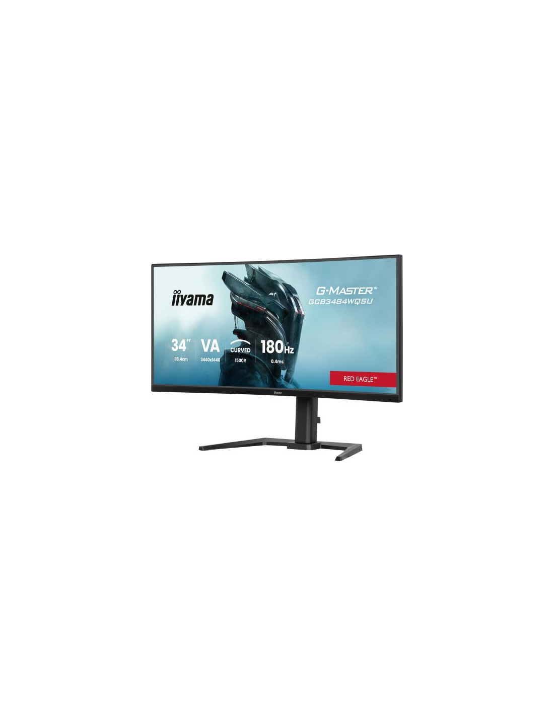 Monitor curvo Iiyama G-Master GCB3484WQSU-B1 com ecrã de 34 polegadas, resolução UltraWide QHD (3440x1440), taxa de atualização de 180Hz e tempo de resposta de 0,4ms (MPRT). A curvatura de 1500R proporciona uma experiência imersiva. Inclui tecnologia HDR400 e FreeSync Premium. Ideal para jogos e multitarefas, com funcionalidades Picture-in-Picture (PiP) e Picture-by-Picture (PbP).