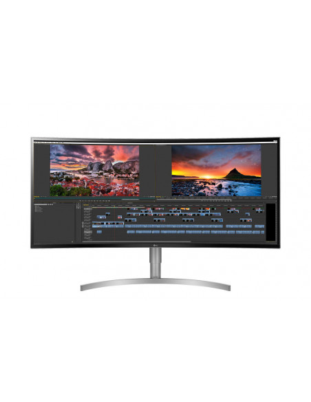 LG 38WK95C-W. Diagonal de la pantalla: 95,2 cm (37.5"), Resolución de la pantalla: 3840 x 1600 Pixeles, Tipo HD: UltraWide Quad HD, Tecnología de visualización: LED, Tiempo de respuesta: 5 ms, Relación de aspecto nativa: 21:9, Ángulo de visión, horizontal: 178°, Ángulo de visión, vertical: 178°. Altavoces incorporados. Conector USB incorporado, Versión de conector USB: USB 3.0 (3.1 Gen 1). montaje VESA, Ajustes de altura. Color del producto: Plata, Blanco