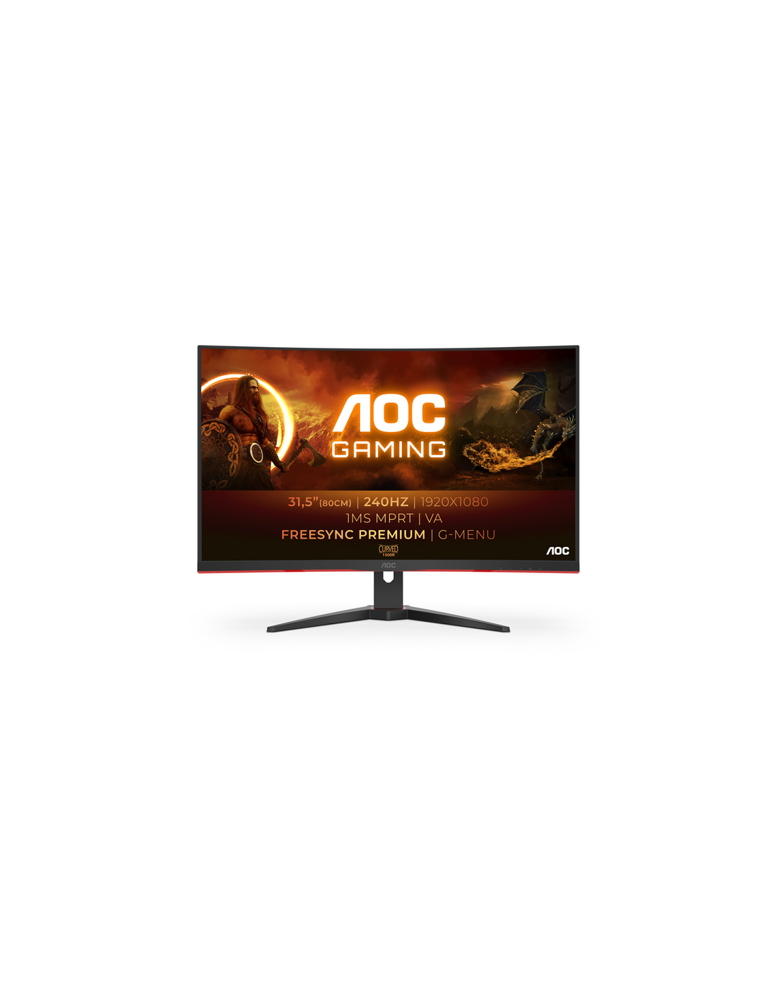 Monitor Curvo AOC C32G2ZE/BK 31.5" Full HD 240Hz, FreeSync, 0.5ms e Design Gaming