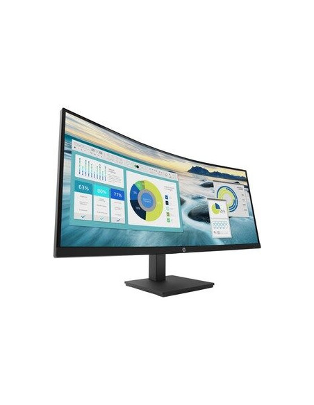 O monitor curvo HP P34hc G4 oferece uma experiência visual imersiva com resolução WQHD (3440 x 1440) numa tela de 34 polegadas.  Integra uma porta USB-C, hubs USB e um comutador KVM para maior comodidade. Taxa de atualização de 100 Hz para imagens fluidas. Painel VA com alta taxa de contraste.