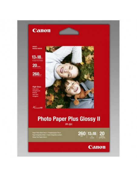 Canon Photo Paper Plus Glossy II PP-201 - Brilhante - 130 x 180 mm - 260 g/m² - 20 folha(s) papel fotográfico - para PIXMA iP2700, iX7000, MG2555, MP520, MP610, MP970, MX300, MX310, MX700, MX850, TS7450