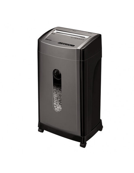 Destructora de alta seguridad ideal para ser utilizada de 1 a 5 usuarios. Destruye hasta 12 hojas en MicroPartículas de 2x14 mm (Nivel de seguridad P-5). Papelera extraible de 30 litros de capacidad. Doble entrada para papel y Cds. Ciclo de trabajo de 15 min. Destruye grapas, tarjetas de crédito y Cds. Dimensiones (AlxAnxPro): 650 x 373 x 290 mm.