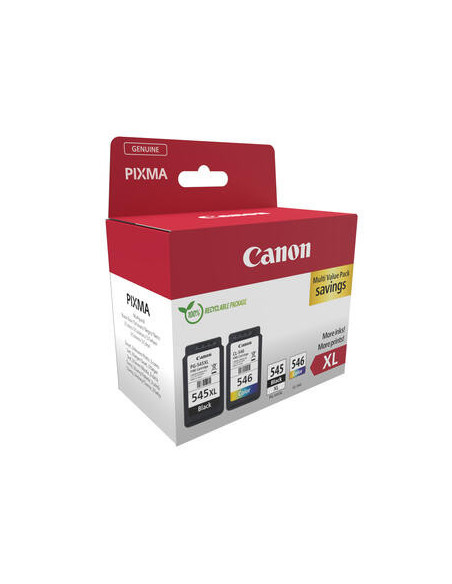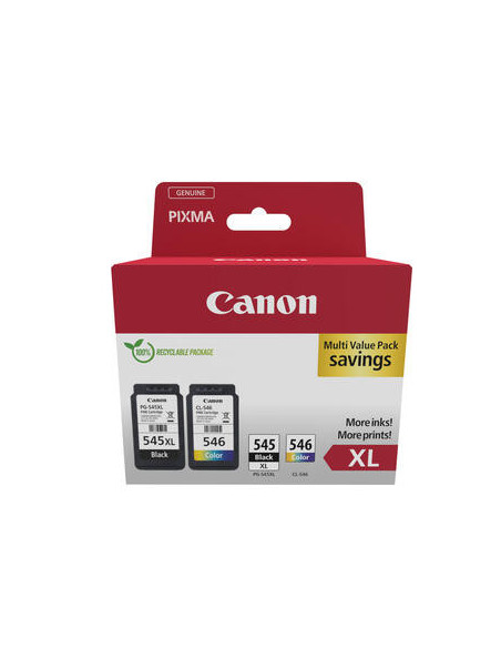 Pack de cartuchos de tinta Canon PG-545XL/CL-546XL de alto rendimento (XL). Cores: preto, ciano, magenta e amarelo.  Oferece qualidade de impressão superior para resultados vibrantes e duradouros. Inclui 2 cartuchos.