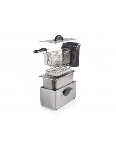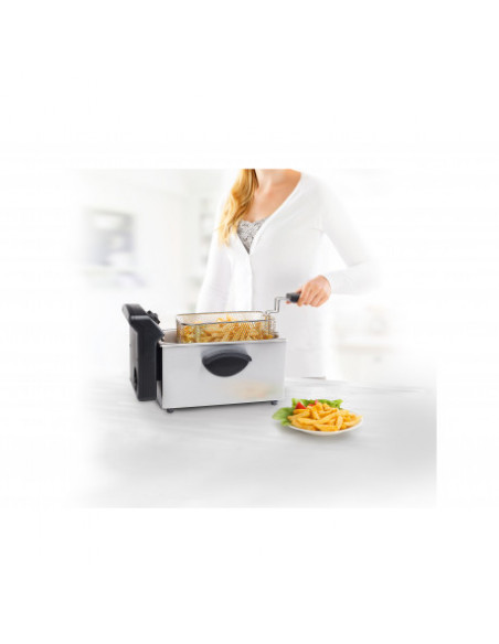 Princess 182626. Tipo de produto: Fritadeira, Capacidade: 3 l, Capacidade da fritadeira: 0,7 kg. Tipo de construção: Individual, Cor da caixa: Inox, Tipo de controlo: rotativo. Tipo de monitor: Análogo. Potência: 2000 W, Frequência de entrada AC: 50/60. Largura do produto: 400 mm, Profundidade da Unidade: 170 mm, Altura da Unidade: 250 mm