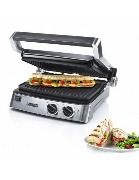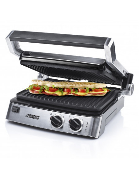 Princess 117300. Energia total: 2000 W, Modelo: grelha, Fonte de calor: Eléctrico. Fator de forma: Tampo de mesa, Tipo de superfície: Forma redonda para bolo, Cor da caixa: Preto, Prateado. Voltagem de entrada de AC: 220-240