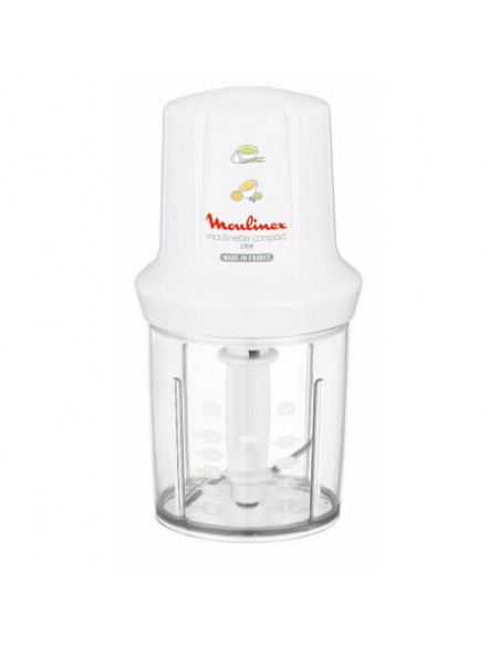 Con sus afiladas cuchillas, la Moulinette Compact puede trocear, picar y mezclar todo tipo de ingredientes. Solo hay que presionar la parte superior para obtener resultados de forma rápida y sencilla. El producto también se limpia fácilmente gracias a su superficie lisa y a sus piezas extraíbles, siendo asimismo fácil de guardar.